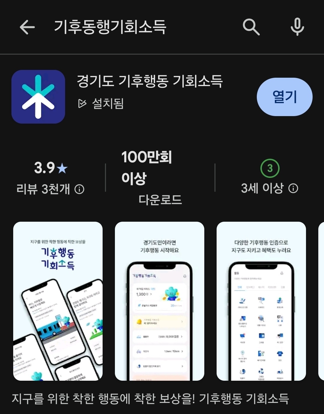 기후행동 기회소득 앱 설치 > 경기도민 인증 후 활동 참여