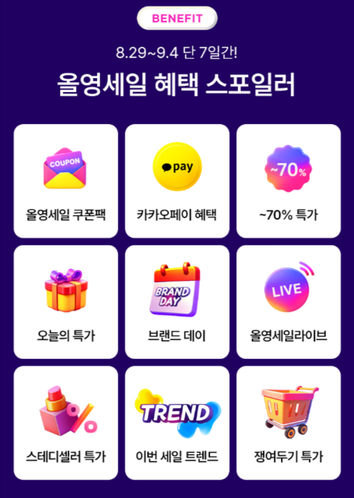 - 신상 특가 & 쟁여두기 특가: 최근 출시된 신상품 400여 종과 필수템을 합리적으로 구매할 기회!