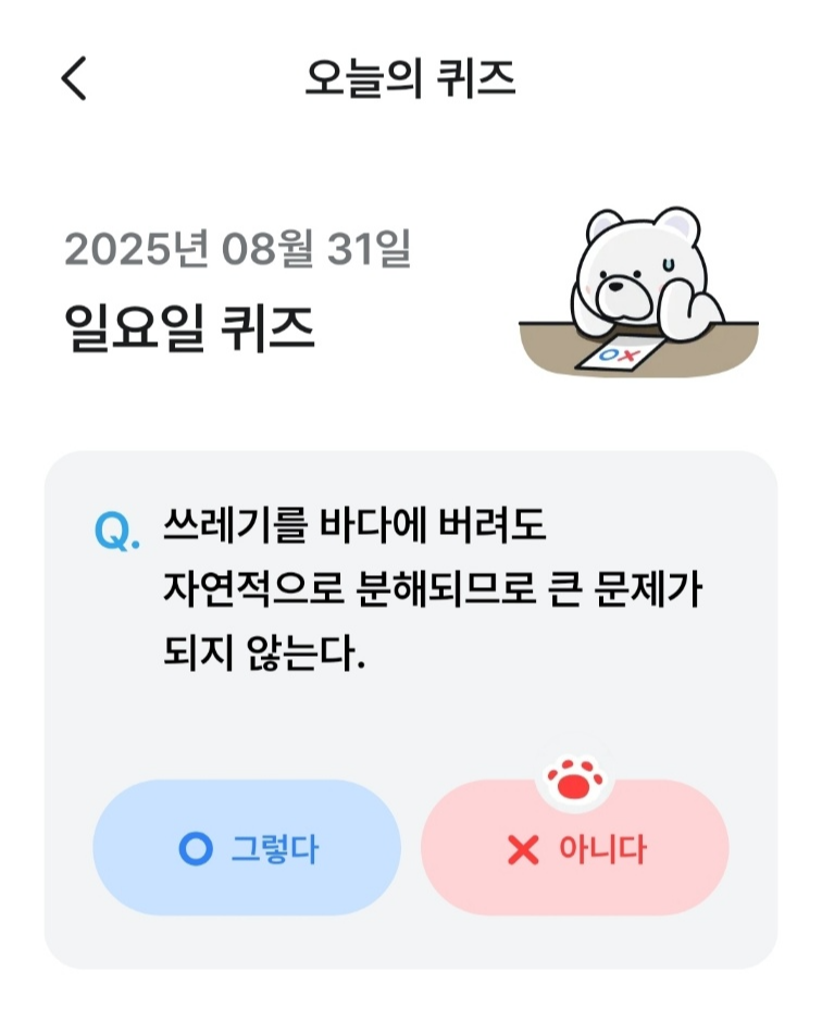 오답시에는 리워드가 없어요! 오늘 퀴즈 정답 맞춰볼까요?