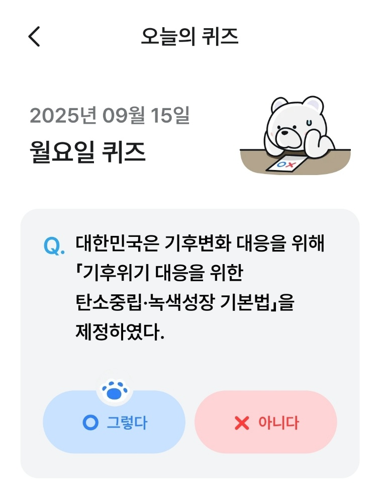 매일 기후행동기회소득 기후퀴즈를 풀고