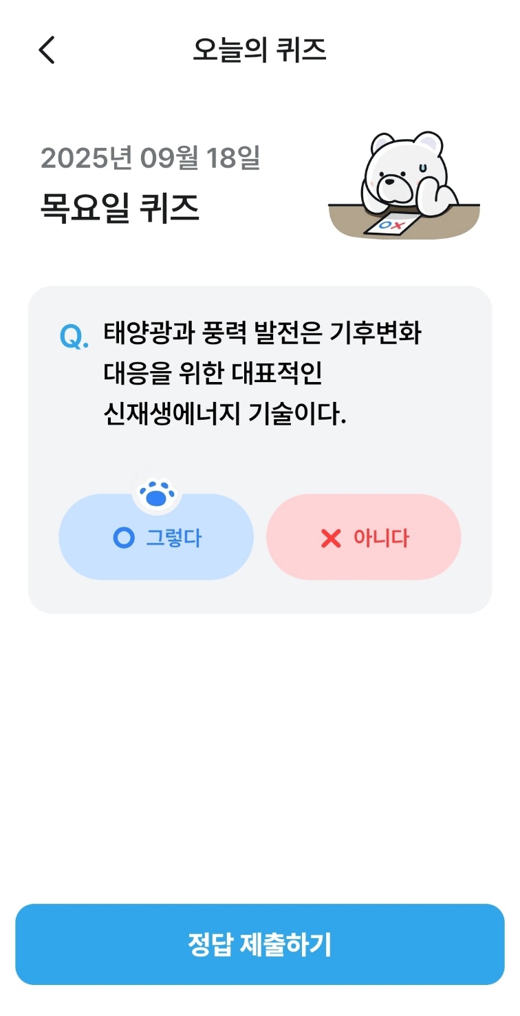매일 기후행동기회소득 기후퀴즈를 풀고