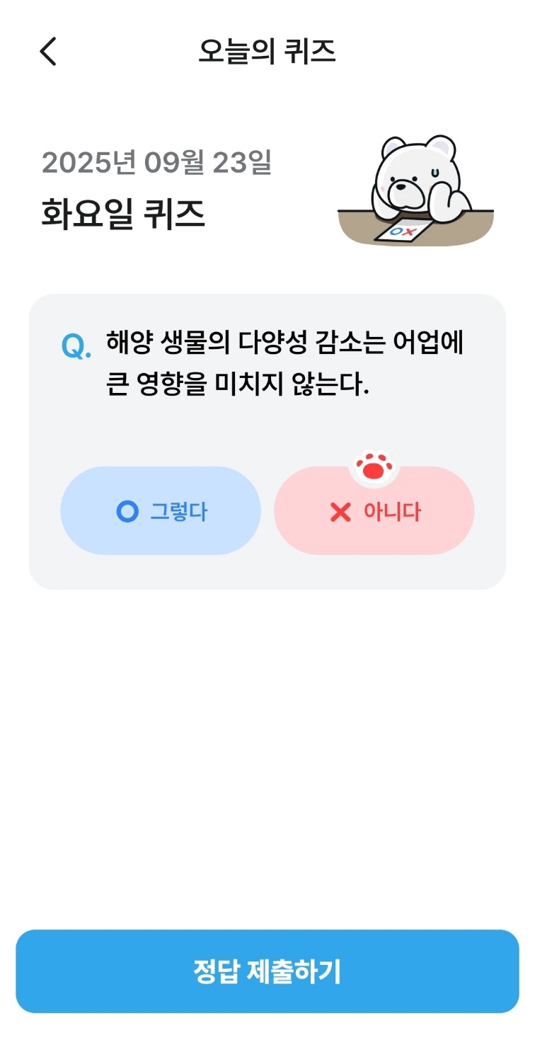 매일 기후행동기회소득 기후퀴즈를 풀고