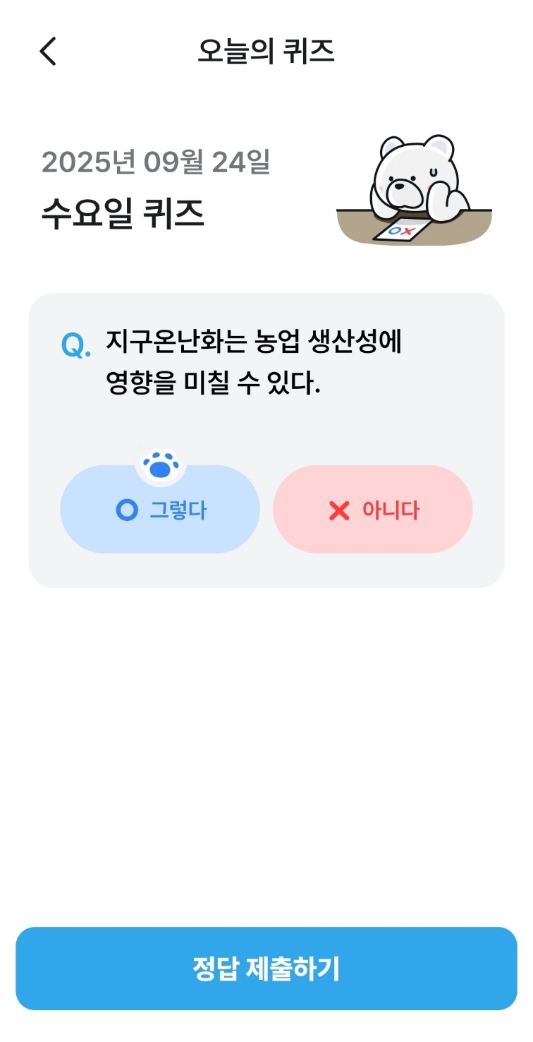 매일 기후행동기회소득 기후퀴즈를 풀고