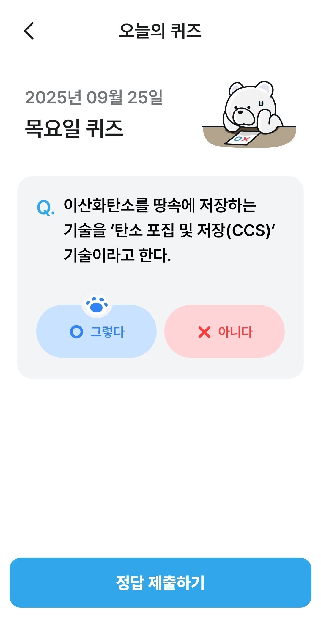 매일 기후행동기회소득 기후퀴즈를 풀고
