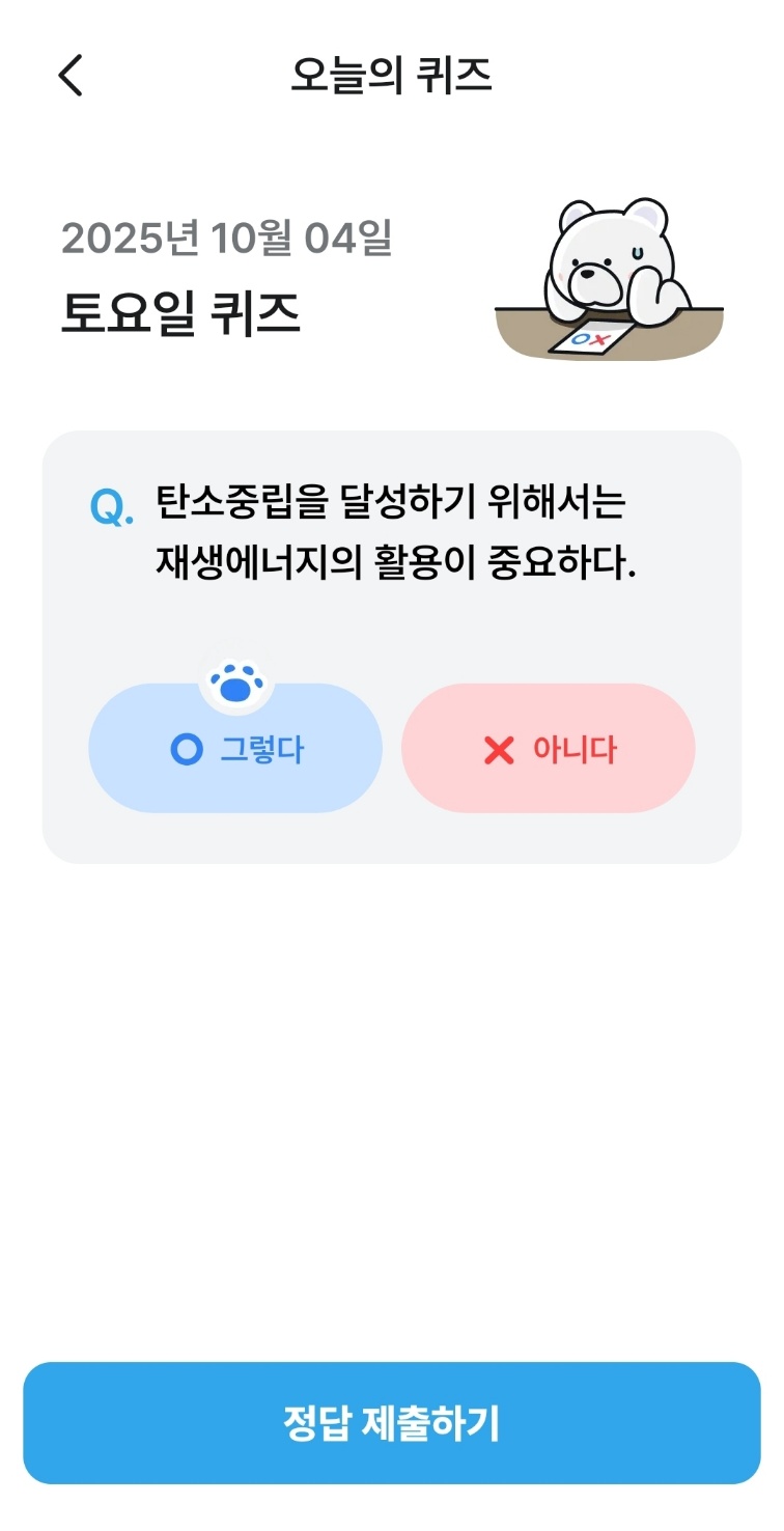 매일 기후행동기회소득 기후퀴즈를 풀고